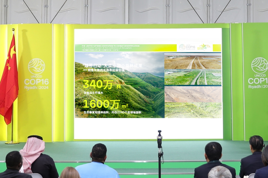 《联合国防治荒漠化公约》第十六次缔约方大会COP16 将于12月13日在沙特首都利雅得闭幕。总面积超过600平方米的中国馆,以及“跨世纪三北工程 新时代中国实践”中国荒漠化防治主题展成为此次COP16的一大亮点。这是中国首次在境外对荒漠化防治和“三北”攻坚战进行展示宣介。