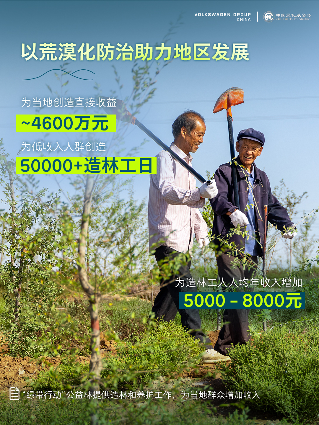 中国绿化基金会欢迎更多的像大众汽车集团(中国)这样的爱心企业加入生态治理工作,共同探索有效治理模式,积极开展荒漠化治理工作,共同守护我们及后代子孙唯一的地球家园。