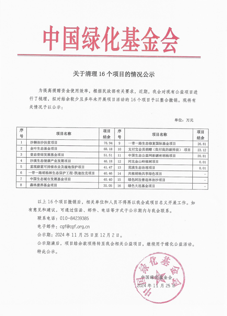 关于清理16个项目的情况公示