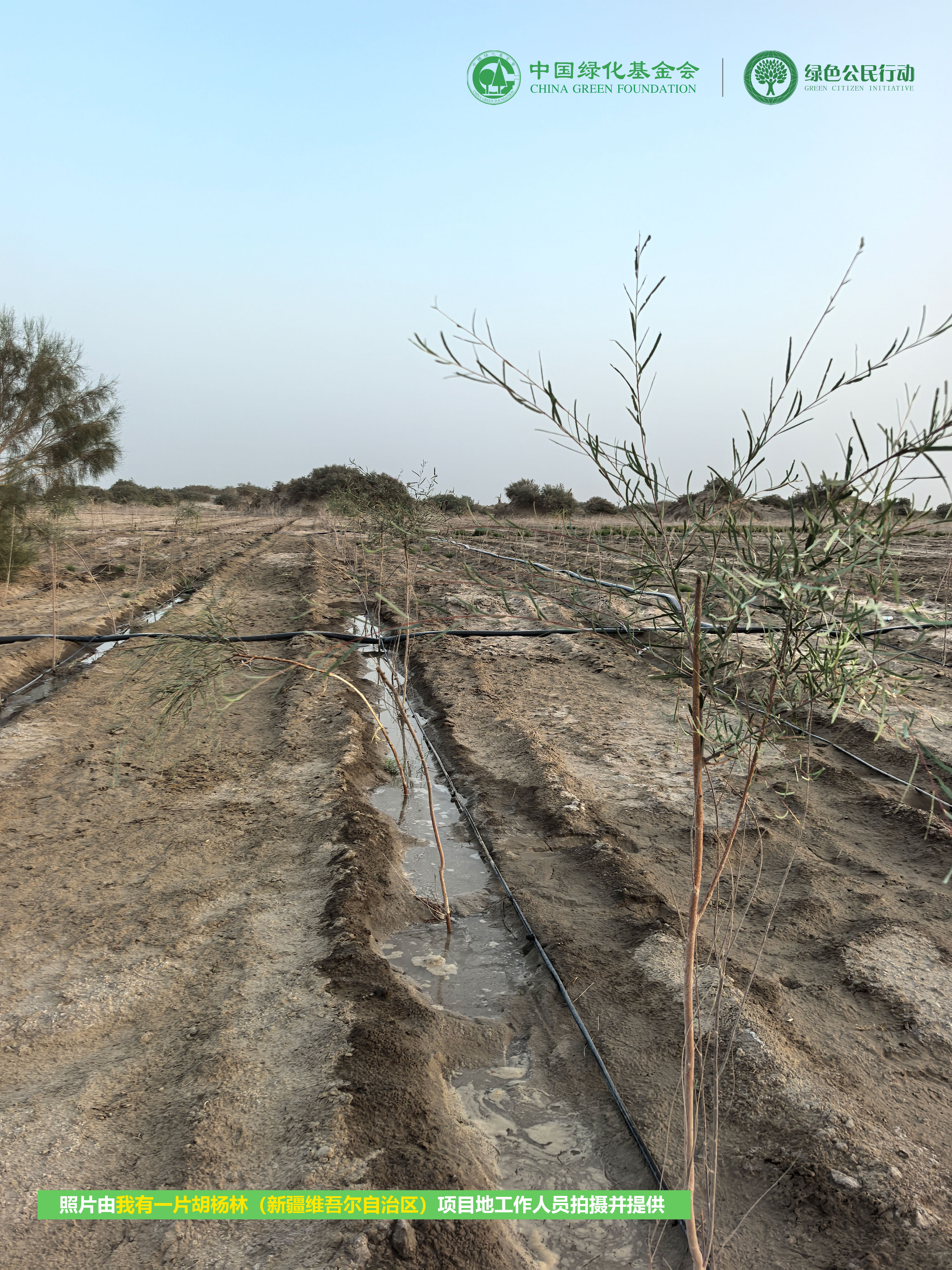 2025年,谨向每一位支持并陪伴“我有一片胡杨林|新疆”项目的爱心人士致以诚挚的感谢!这一年,我们一同走过四季:初春时节,于沙漠之中栽种新苗、铺设灌溉管道;入夏之后,严格把控灌溉频率,并借助汛期引洪润土;金秋之际,完成冬灌工作,筑牢林地越冬根基;深冬之时,持续开展巡护工作,守护胡杨安然休眠。从胡杨幼苗开始萌发,到林地安稳度过寒冬,每一个阶段都凝结着爱心与坚守。正因如此,荒漠中的胡杨根系得以更加深入地扎根,戈壁的生机也在不断孕育。