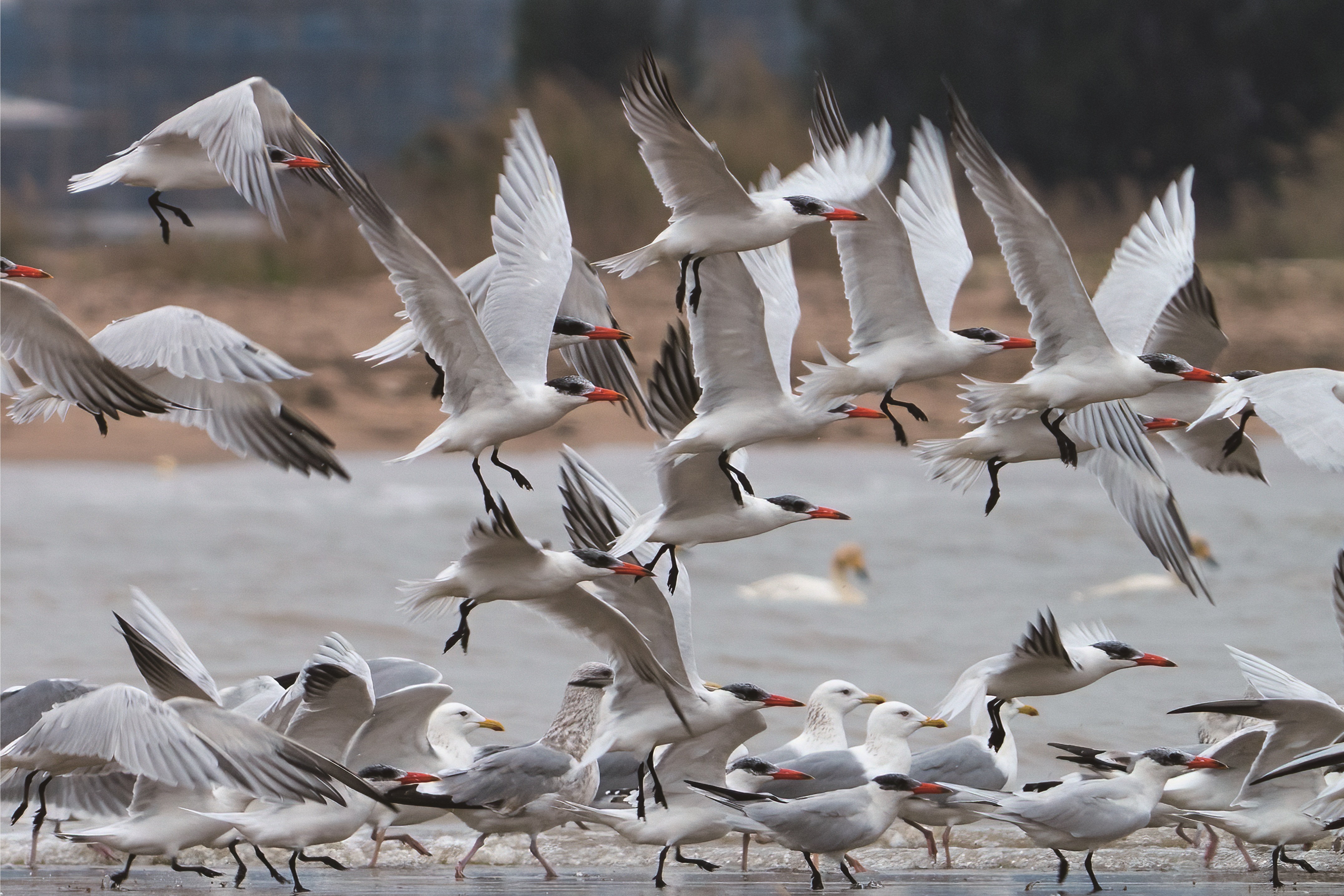 闽江河口湿地——红嘴巨鸥(福建闽江河口湿地国家级自然保护区提供)