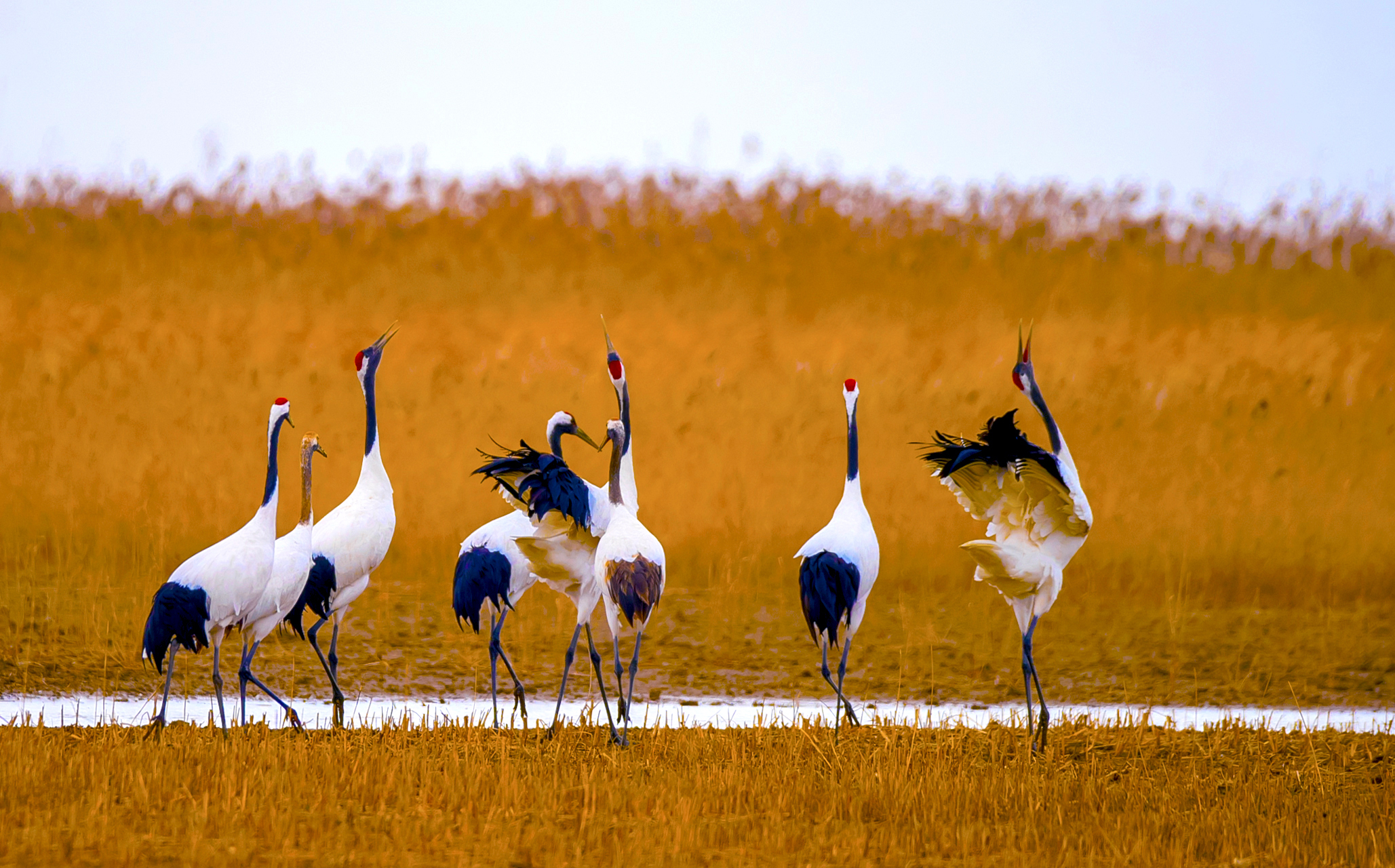 山东东营黄河三角洲自然保护区——鹤之歌(陈保成 摄)