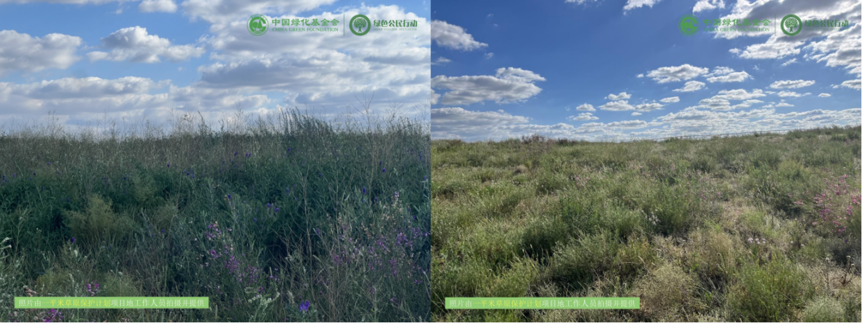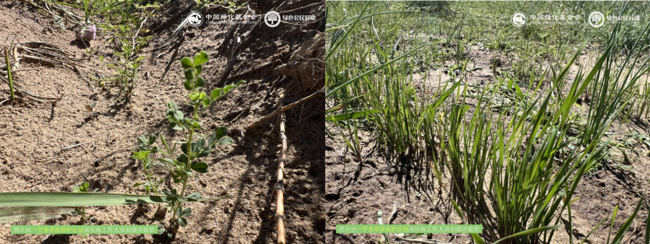 2024年7月新修复的311亩退化草地,在充足的雨水和管护员的浇灌下,得到了充分的滋养,不仅迅速发芽,而且在短短两个月的时间里展现出了惊人的生命力。
